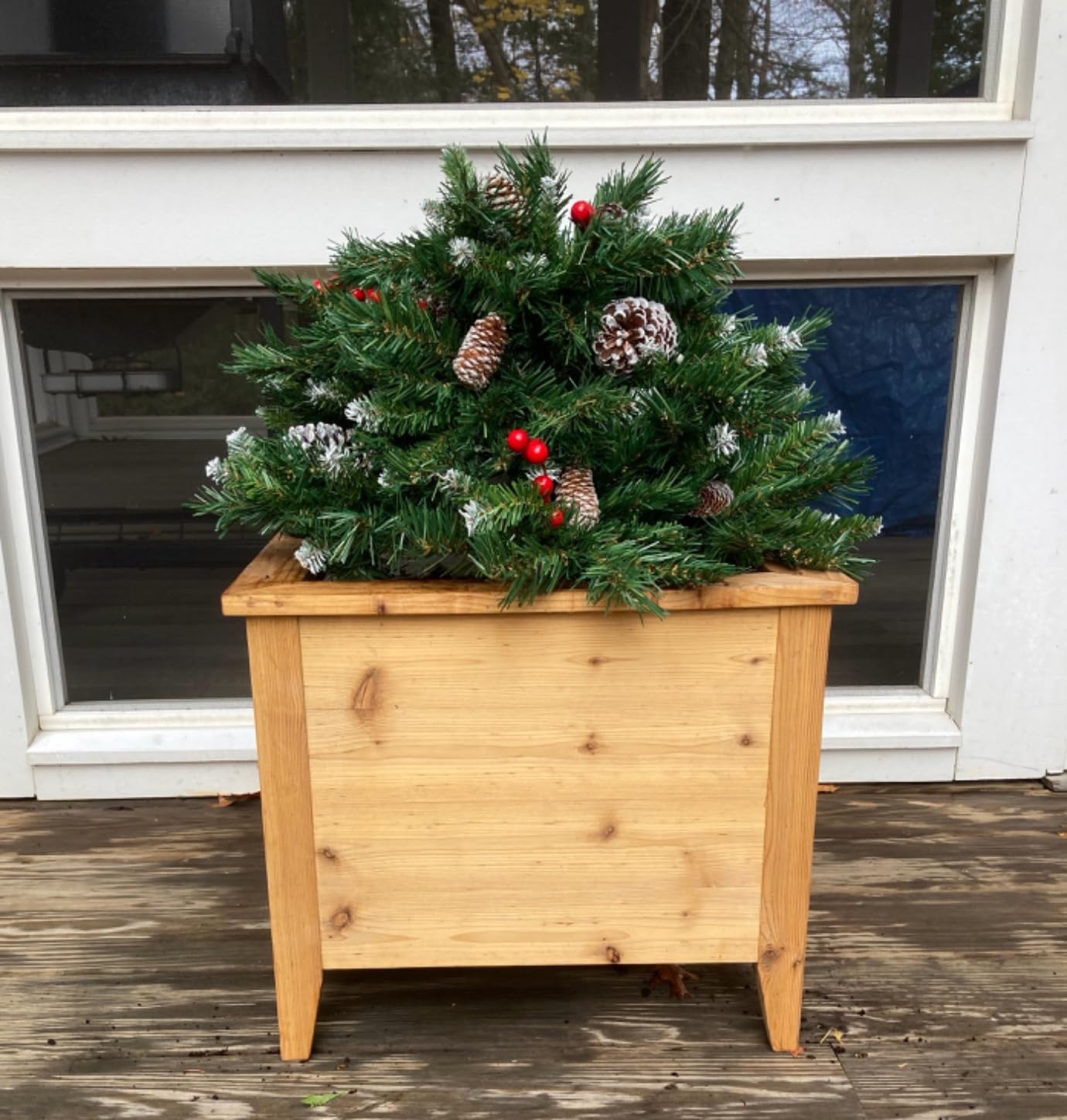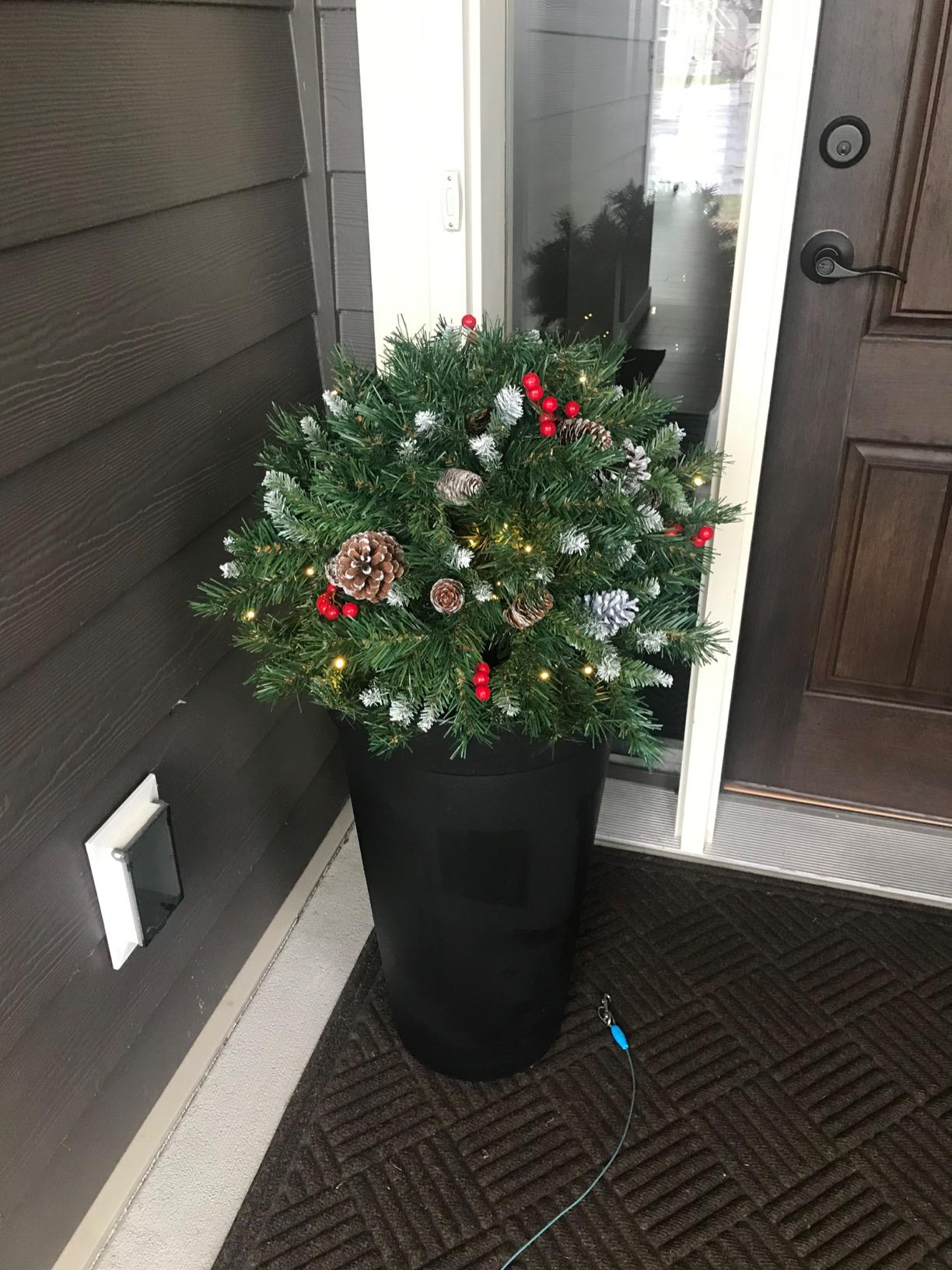 Now that mum season has come and gone I wanted a winter artificial greens filler for a small deck planter. This lovely urn filler is exactly what I was looking for! It is the perfect size for my 18 inch square box, it does not scream ‘Christmas’ so I plan to leave it out through the winter and the tiny lights are a subtle addition when darkness arrives.