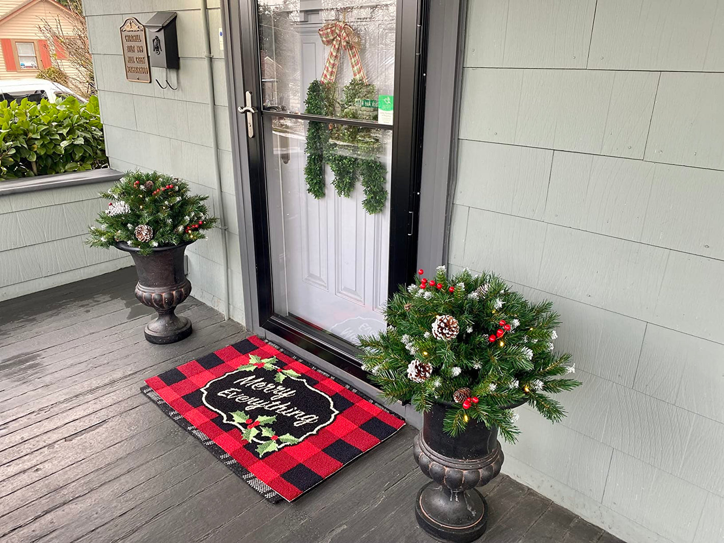 Urn fillers are surprisingly expensive. When I saw this option at such a low price comparatively, I didn’t expect much. But they’re great! They look the most exquisite and realistic, perfect for placing on the porch.! Very full, some nice pops of color with the holly and pine cones.