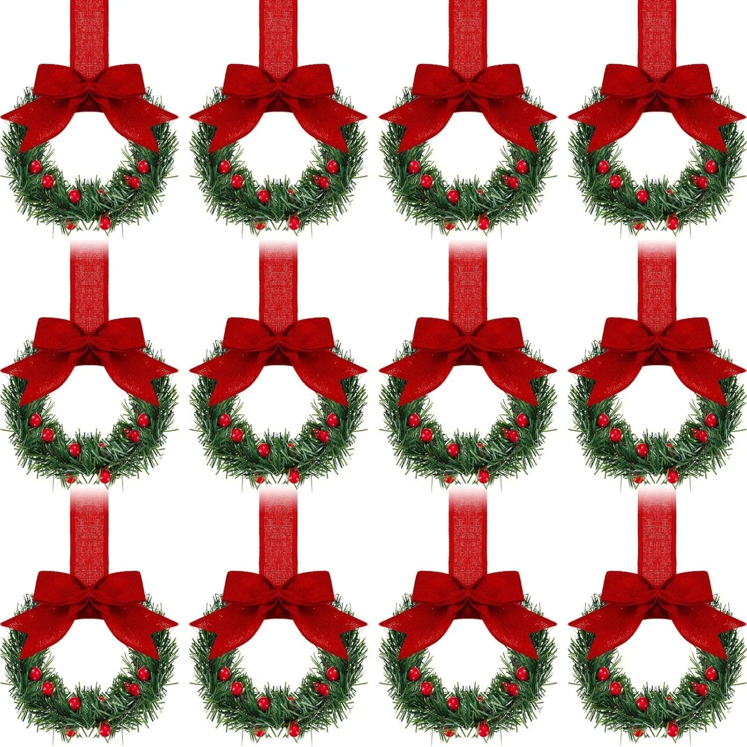Detailed Decorative Features: the mini Christmas wreath for kitchen cabinets are decorated with berries, pine cones, red bows and so on; Their stylish, lifelike decorative features give them an authentic festive feel that is sure to impress